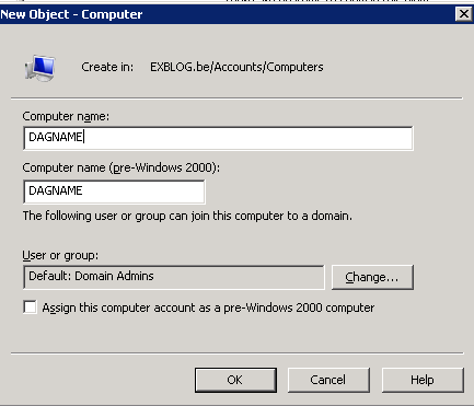 Another way to get around the possible issue of permissions, is to create the Cluster Name Object (CNO) upfront. This process is also called “pre-staging”. Doing so will allow you to create the object up-front with another account (that has the appropriate rights) so that you don’t run into any issues when configuring your DAG.