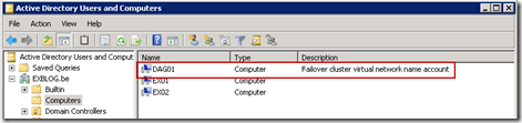 This command will create the DAG. As part of this process, a computer object, also known as the Cluster Name Object, will automatically be created: